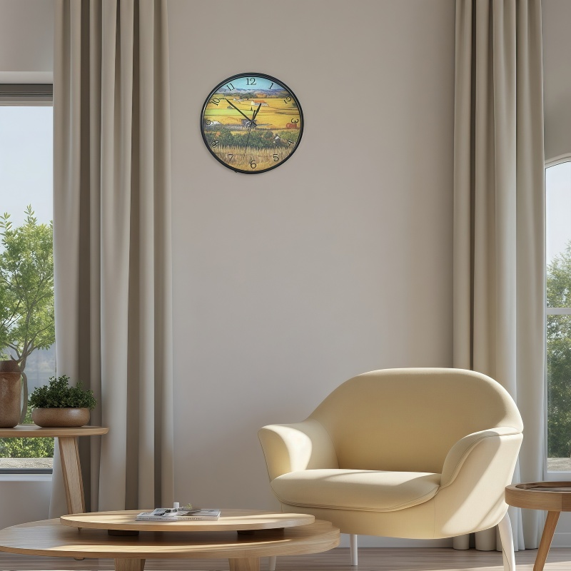 Със своя модерен и изчистен дизайн, този стенен часовник е отличен избор за стилни интериори. Идеален за съвременни домакинства, които ценят както естетиката, така и функционалността.Работи с една батерия от 1,5 волта (АА).